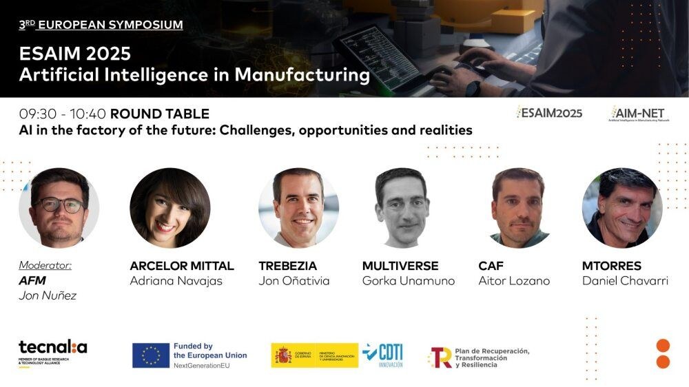 Bilbao, 8 de octubre de 2025. — Jon Oñativia, CEO y cofundador de TrebezIA, participó el pasado 8 de octubre en la mesa redonda «AI in the Factory of the Future: Challenges, Opportunities and Realities», en el marco del congreso ESAIM 2025 organizado por Tecnalia en Bilbao. El simposio, centrado en la aplicación de la inteligencia artificial en la manufactura, reunió a representantes de empresas de referencia del tejido industrial vasco e internacional: Multiverse Computing, ArcelorMittal, CAF y MTorres Diseños Industriales.